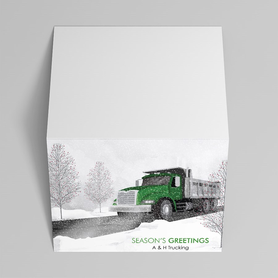 Your holiday cards will get noticed with artwork featuring a green dump truck making a run on these trucking Christmas cards.