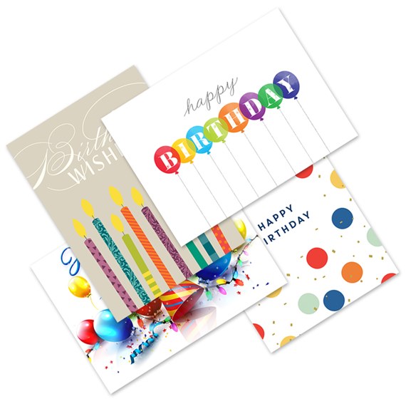 Each birthday card in this assortment pack is fun and festive, so you can send the perfect happy birthday greeting to clients, employees, friends and family. Sold in a package of 20 110 lb. Value Satin Finish Standard folded cards with 5 each design.